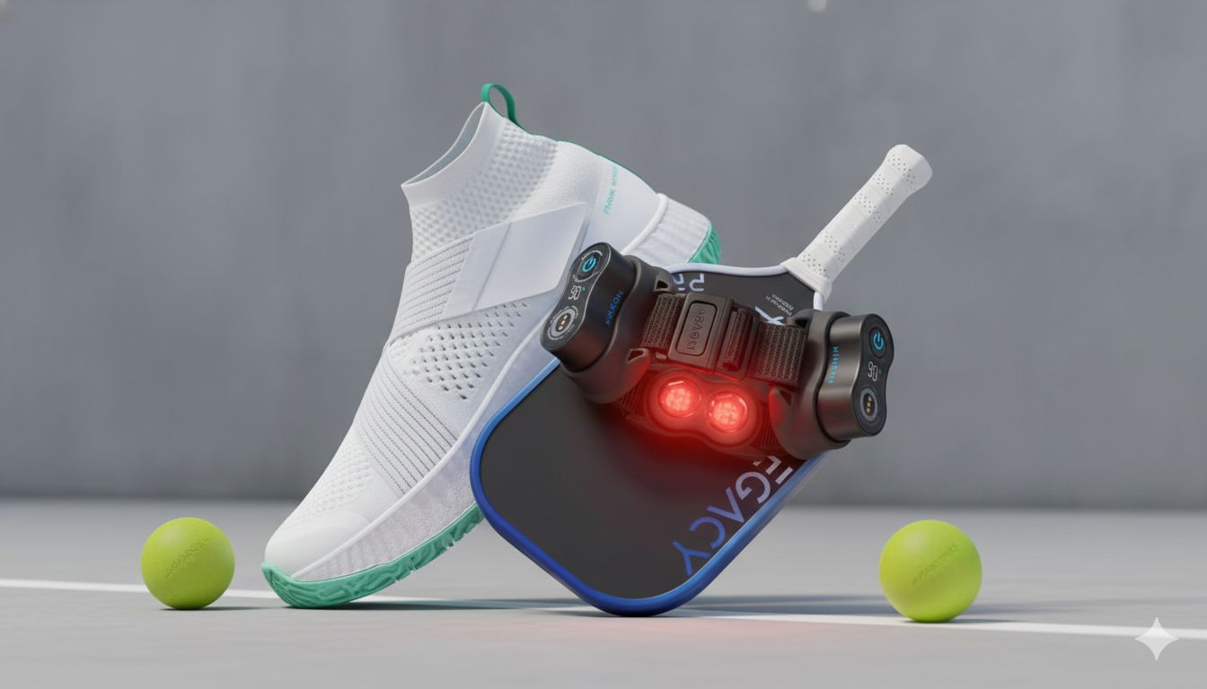 Enter to win a FREE MOVE+ red light laser therapy device, one pair of Frank Works pickleball shoes, one Legacy pickleball padel & Grizzlee Gripz.